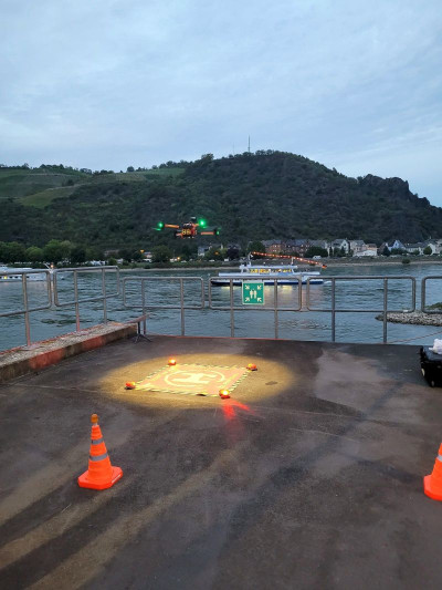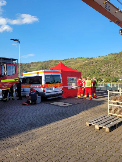Zur schnellen Hilfe im Uferbereich positionierten sich zwei Strömungsrettertrupps der DLRG Rheinböllen und Simmern an den Rheintreppen und auf der Rheinterrasse. Auch der Brandschutz auf dem Wasser war abgesichert: Die Feuerwehren St. Goarshausen und Bingen unterstützten mit ihren Hilfeleistungslöschbooten, während die Besatzungen aus Werlau und St. Goar mit dem Mehrzweckboot St. Goar in Bereitstellung waren.